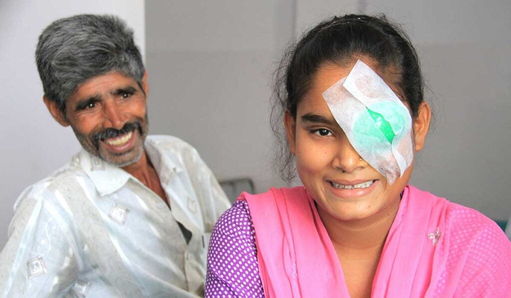“The surgery was successful. There’s a slight improvement in her vision today. It will get better in the next few days. And it will improve further after the second surgery which is planned after two weeks,” says the doctor examining the girls eyes through the slit lamp.
